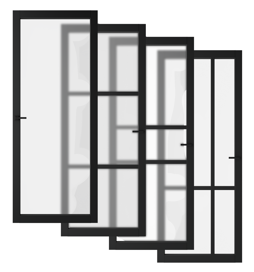• Uitvoeringen met glas (blank of satinato) voor extra lichtinval