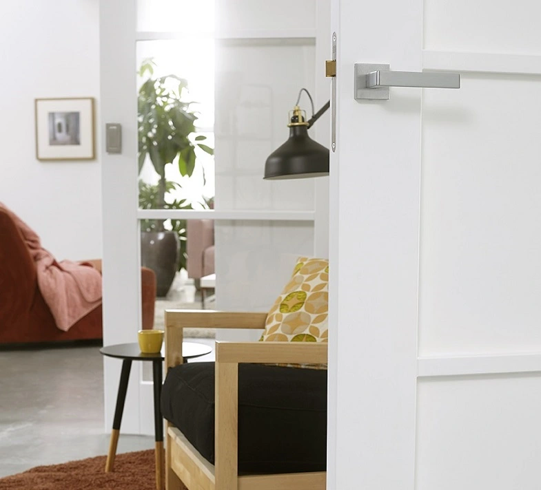 De deuren zijn standaard wit voorbehandeld. Dankzij de gelamineerde stijlen en dorpels met een MDF-toplaag en panelen hebben de Cube-deuren een lange levensduur.